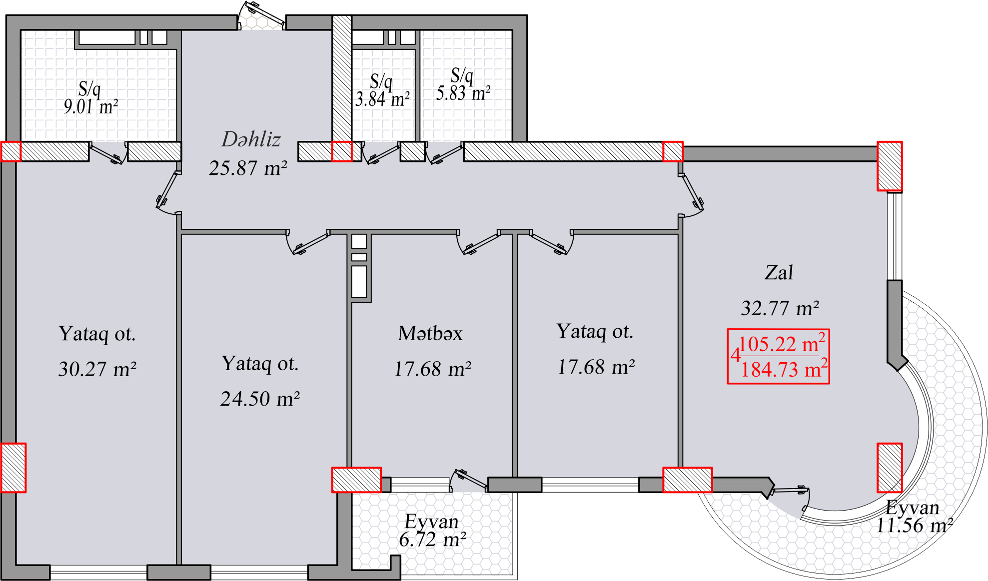 Sahəsi : 184,73 m2